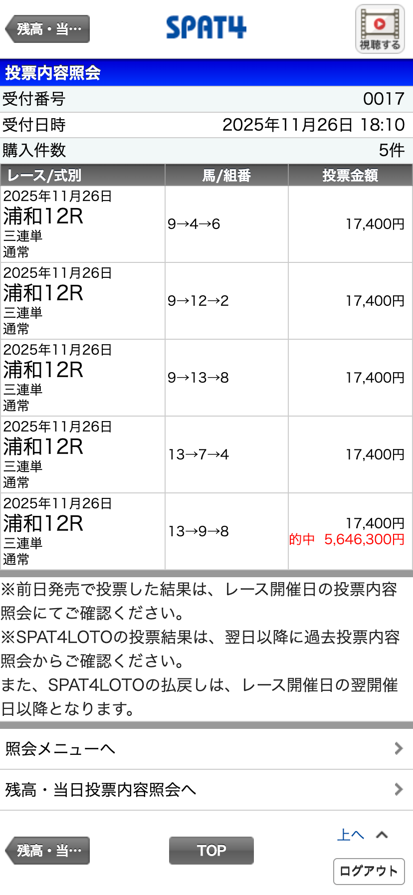 下記のスパット4の画像が、実際に202511月26日に出た結果です👇